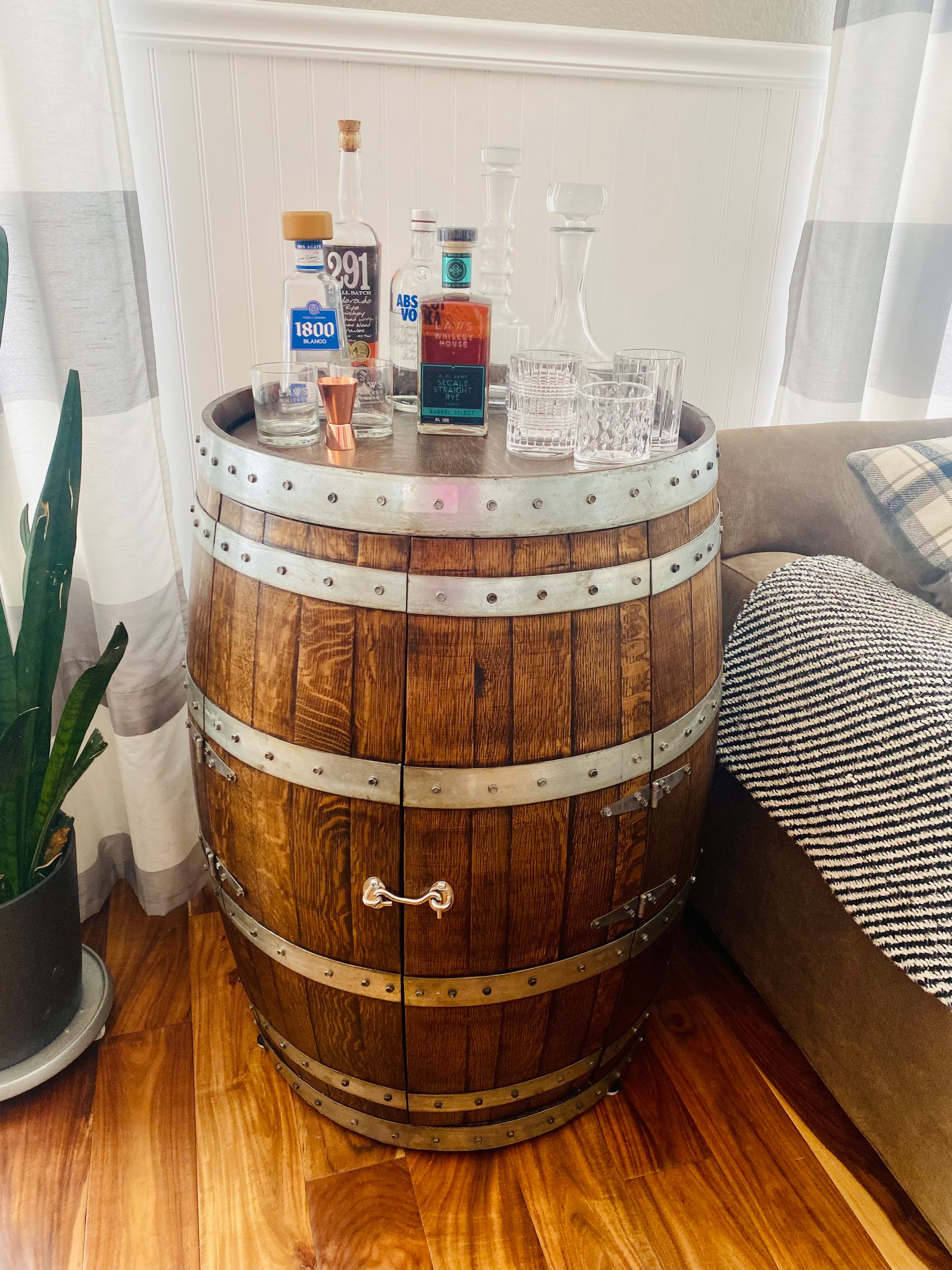 Full Wine Barrel Liquor Cabinet