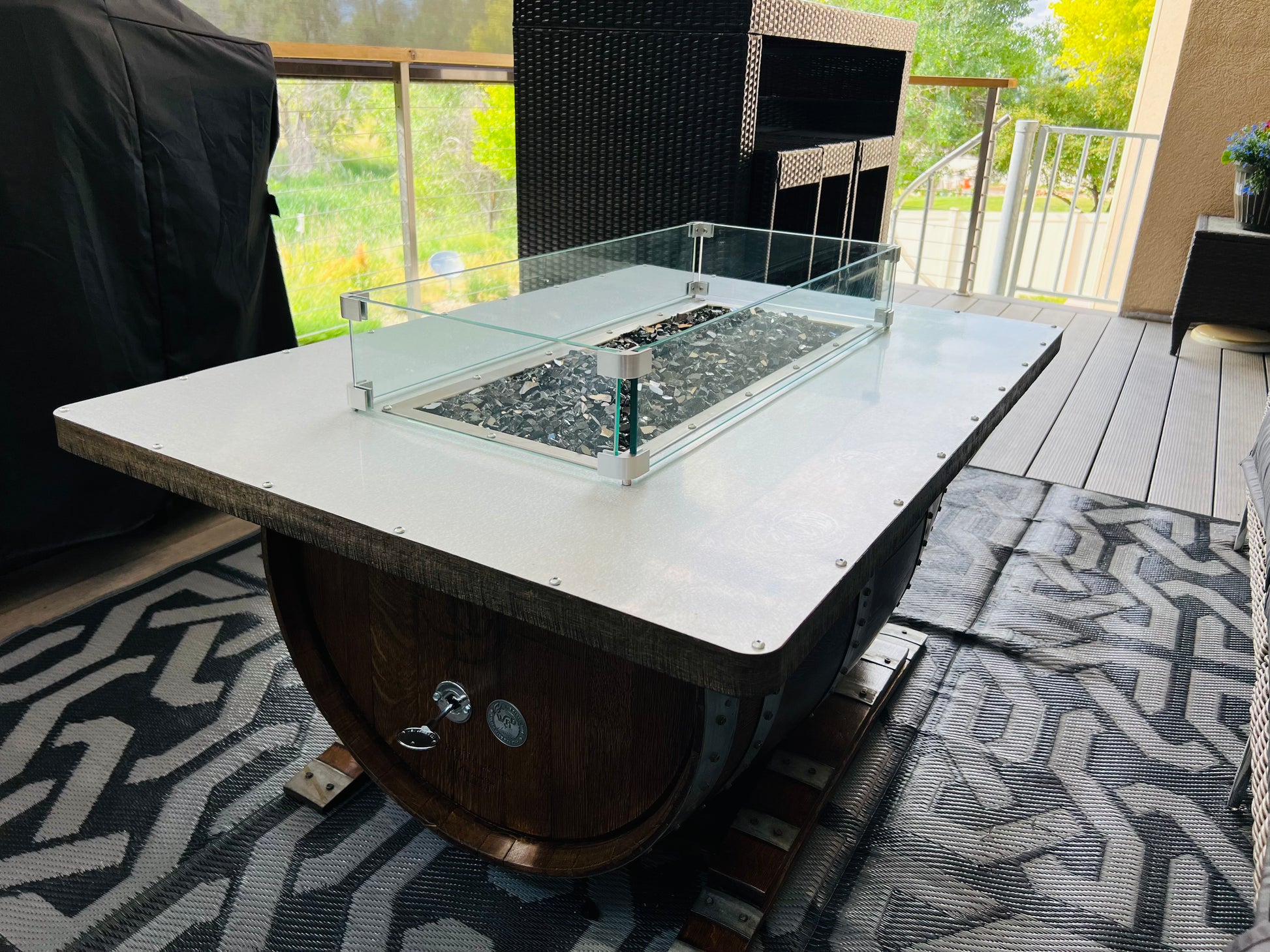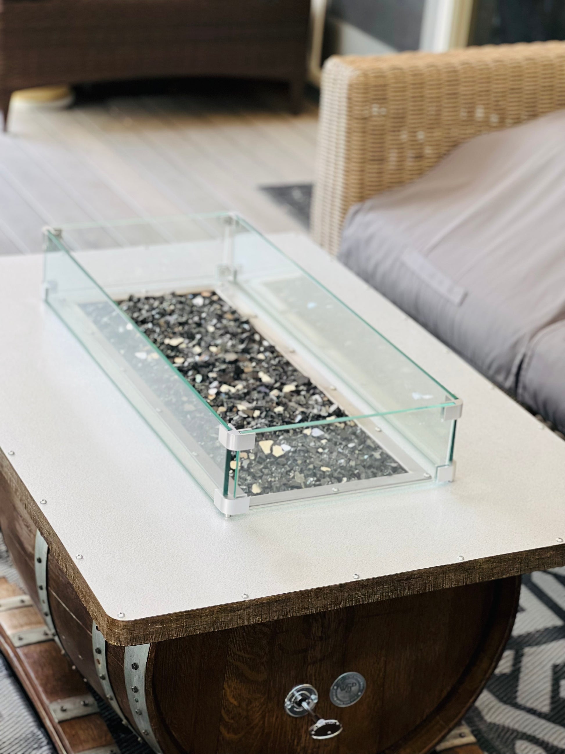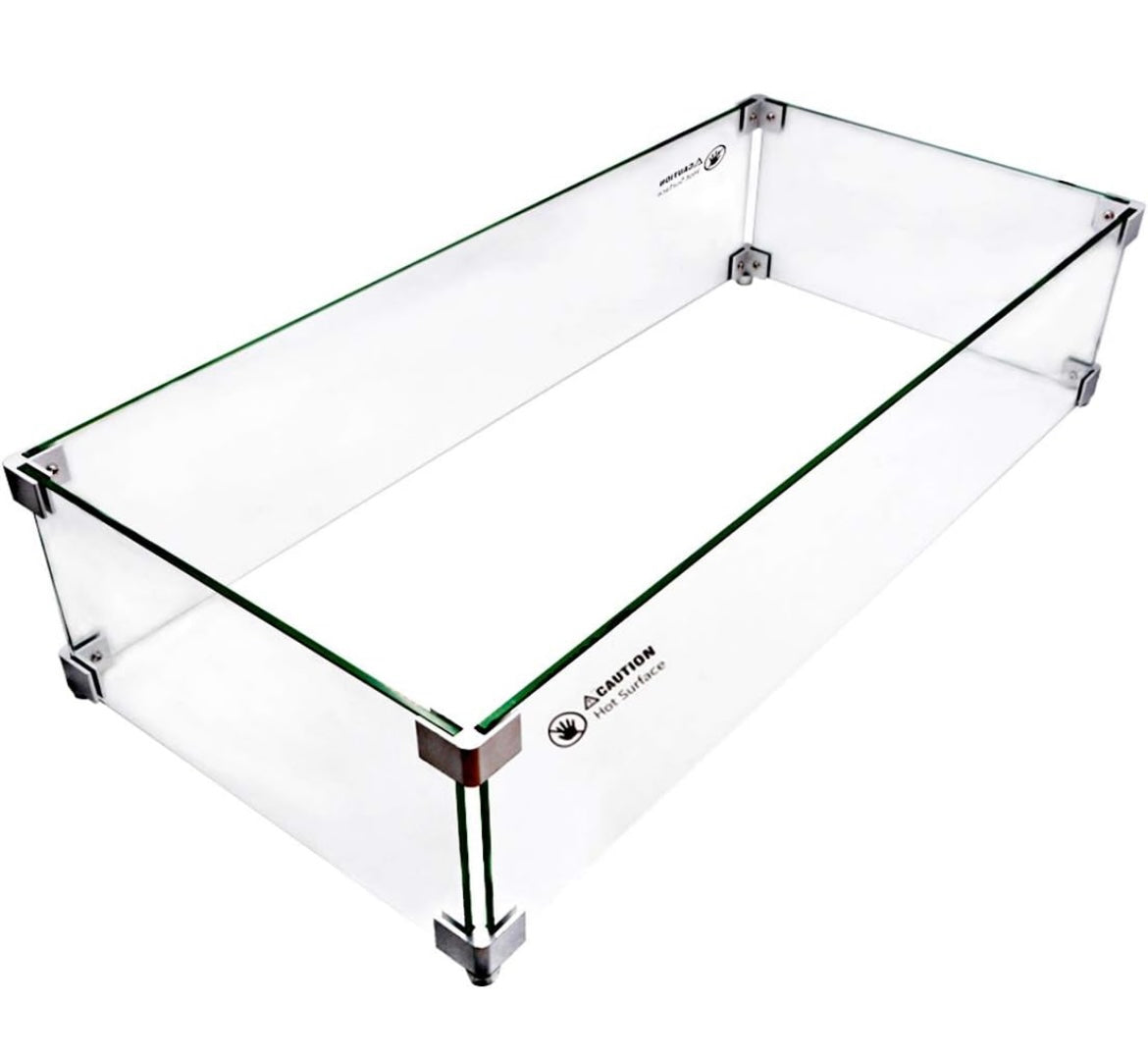 This clear glass wind guard is designed for our fire pits! It provides an additional safety barrier against the breeze while also keeping children and pets away from the flames. HIGHLY RECOMMENDED for the Horizontal Coffee Table Model fire pit